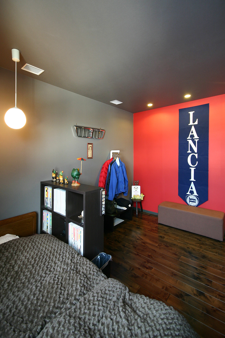 寝室の壁一面を赤い壁に。