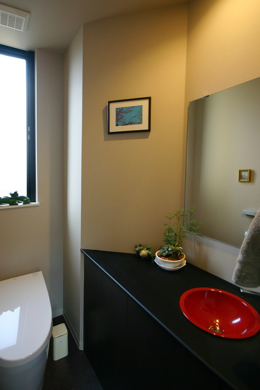 トイレの洗面ボウルを赤に。