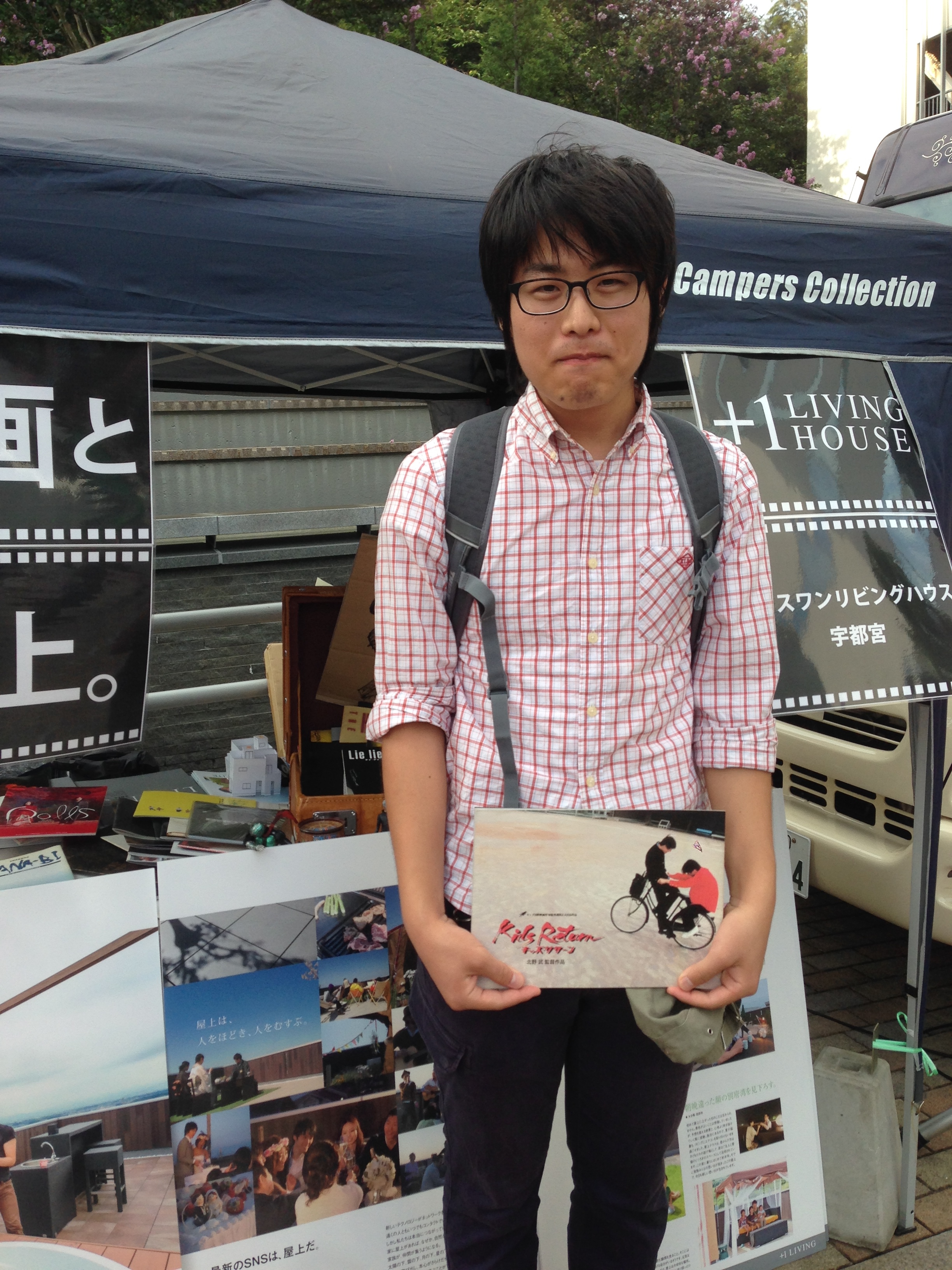 屋上のある住宅の提案と、自宅から古い映画のパンフレットを持参したのです。