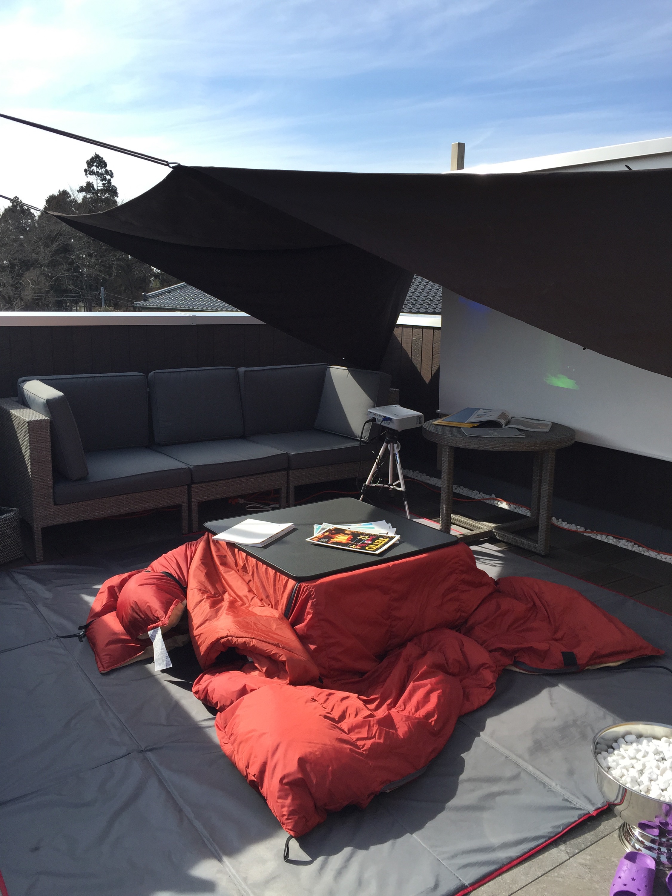 そして今回の秘密兵器が、屋上炬燵です。