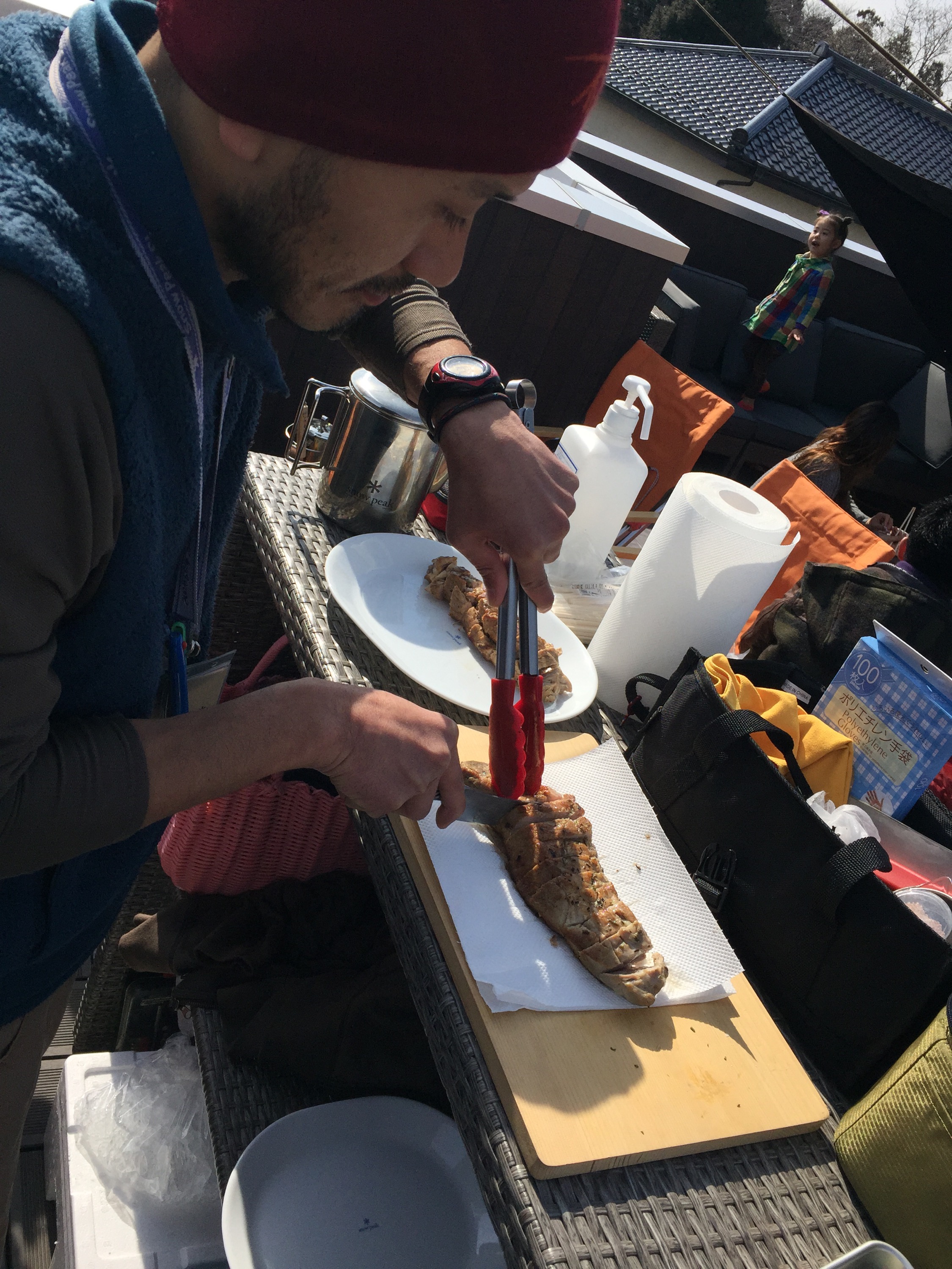 屋上でのキャンプ料理体験です。