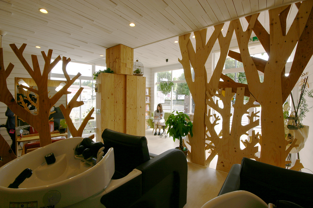 中央公園の緑を窓の向こうの借景としたシャンプーブースで