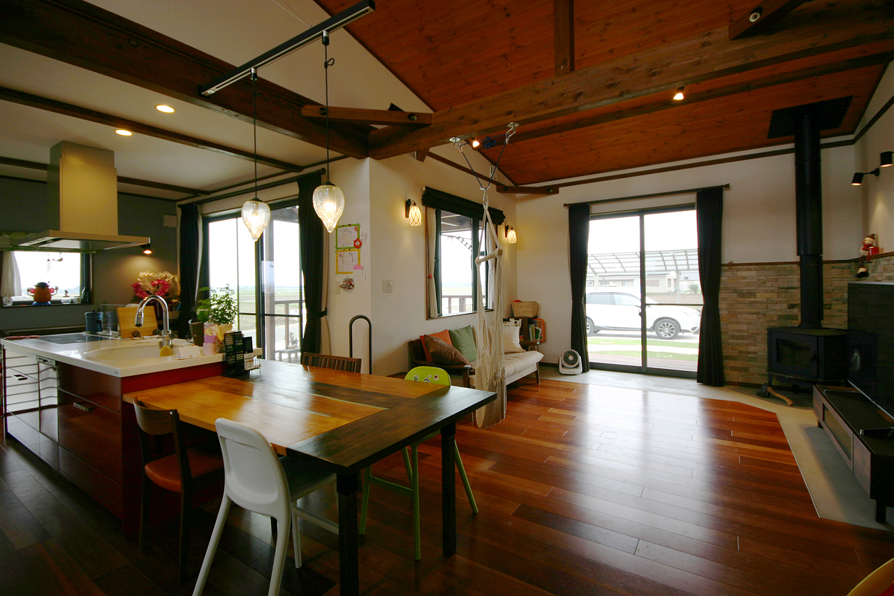 ご覧の通り、平屋です。そして薪ストーブも付いてます。