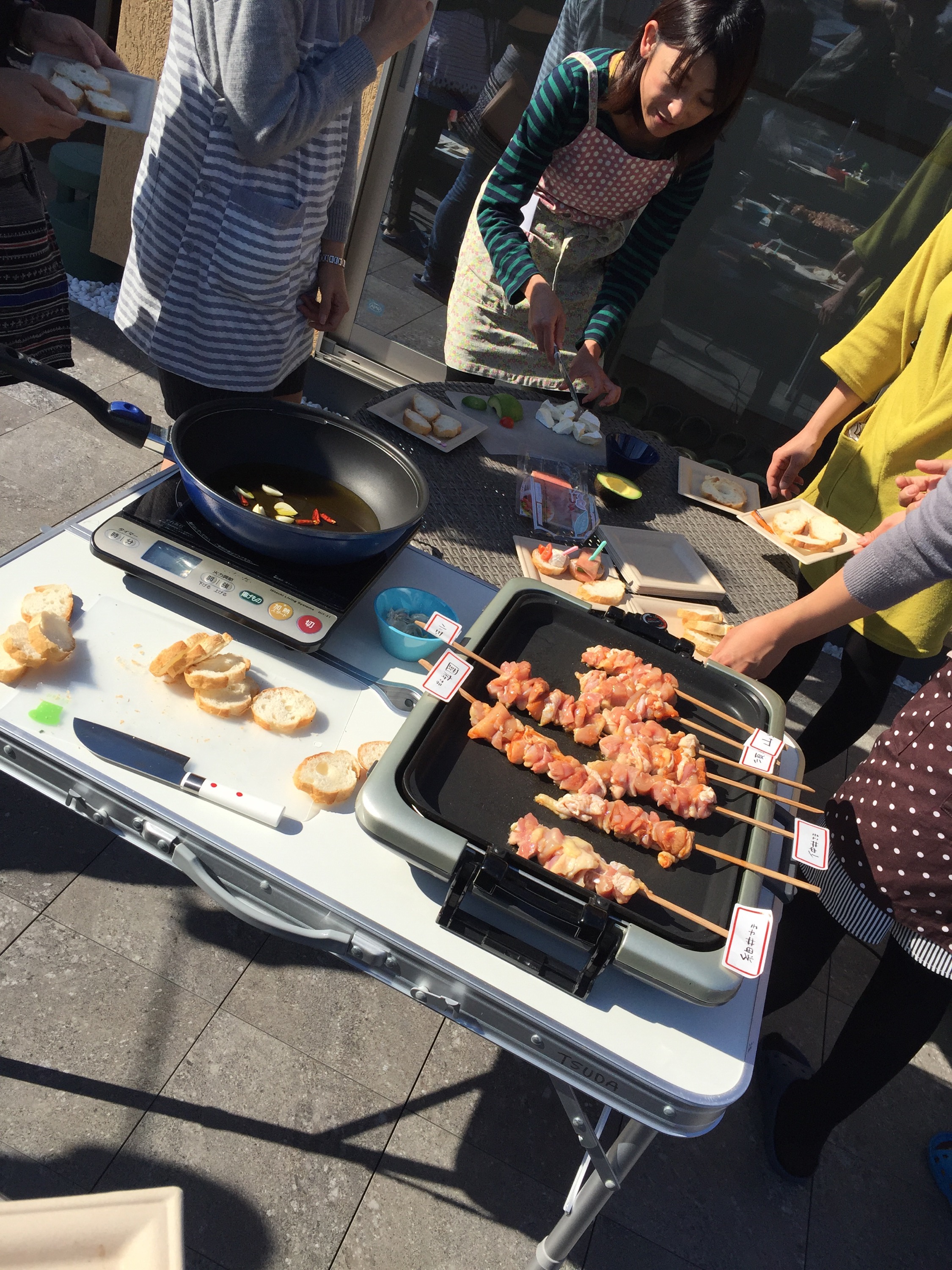 先生の指導の元、エビのアヒージョや、じゃがいものタパス。
