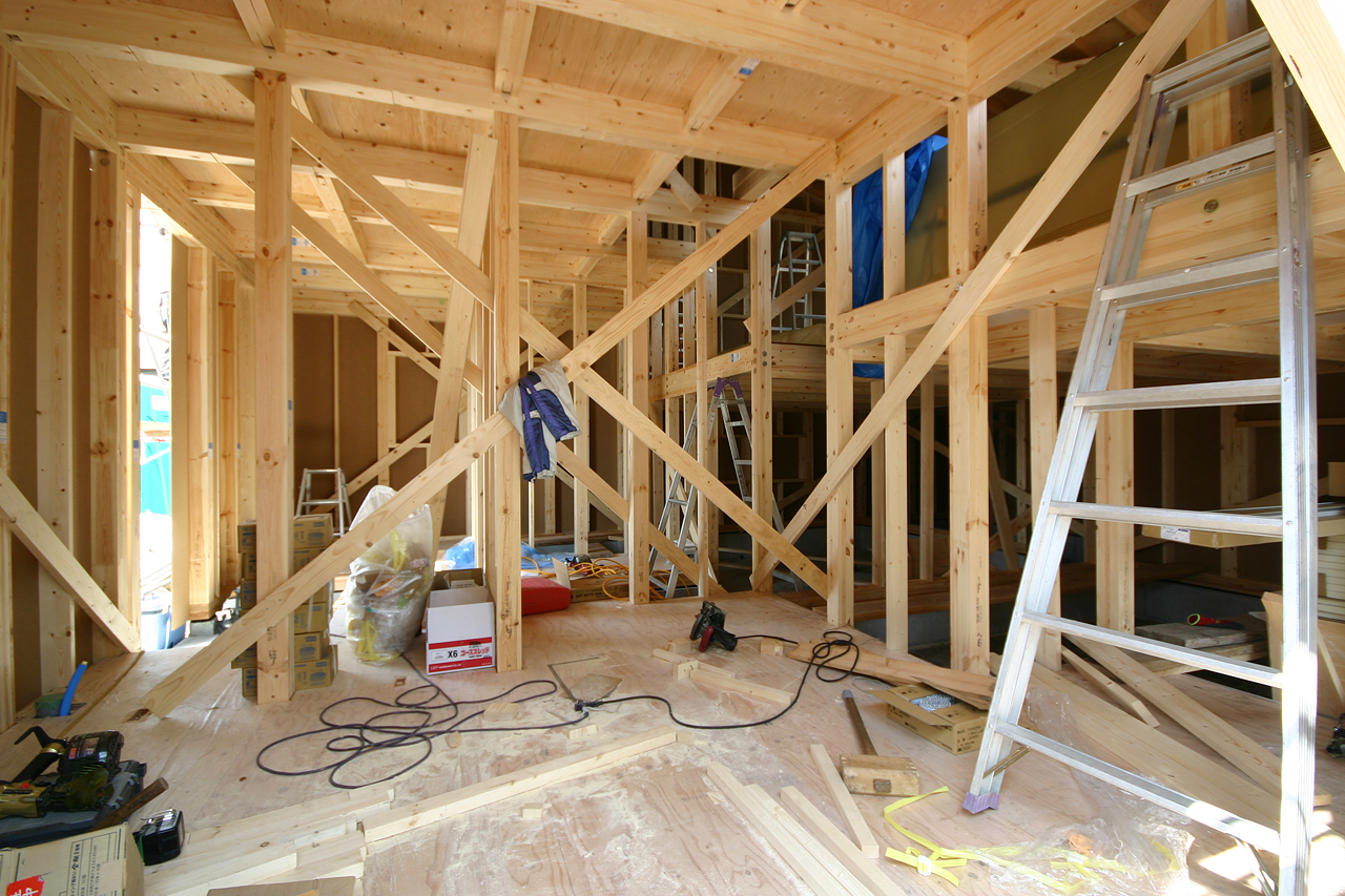 一般的な木造住宅に入っている筋交い(すじかい)ではなく、
