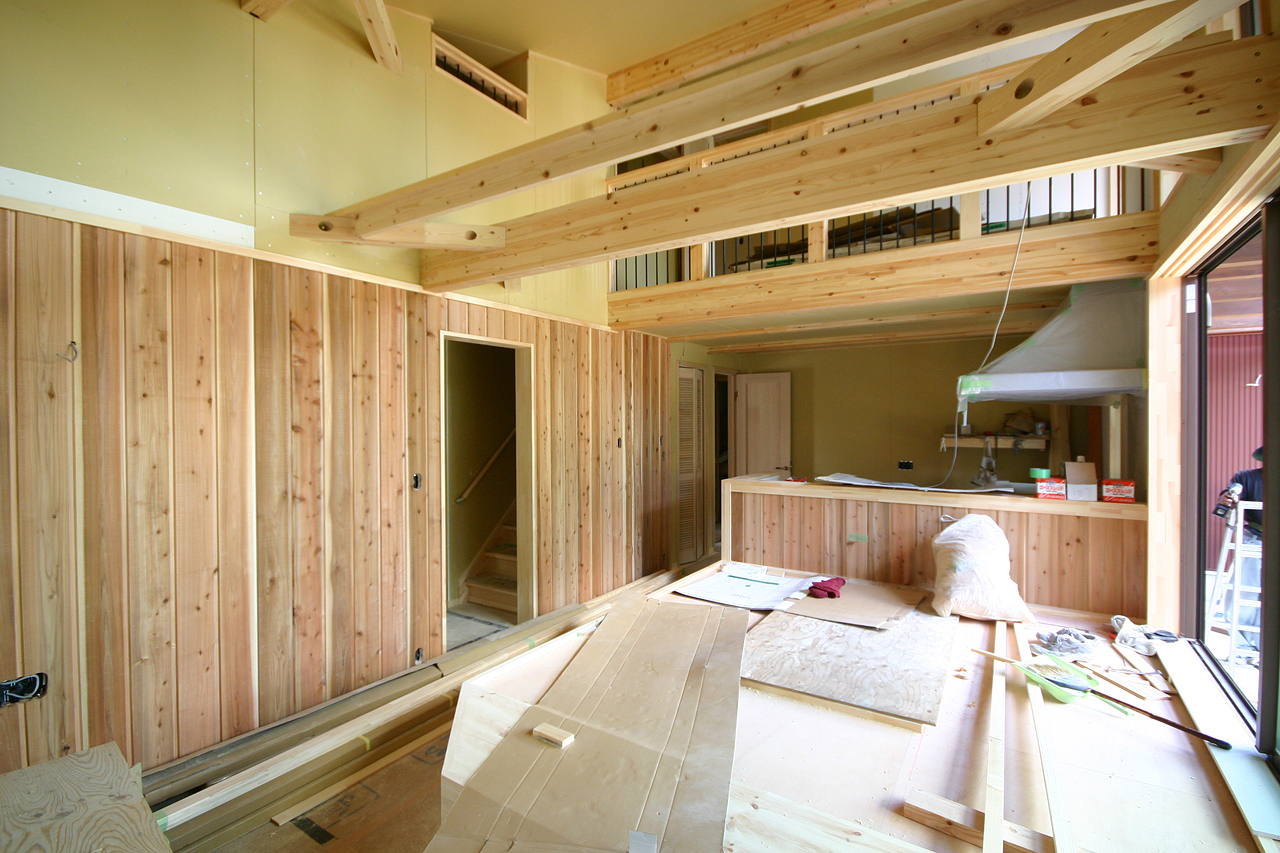 リビングは、ここから木部を全面塗装するので、