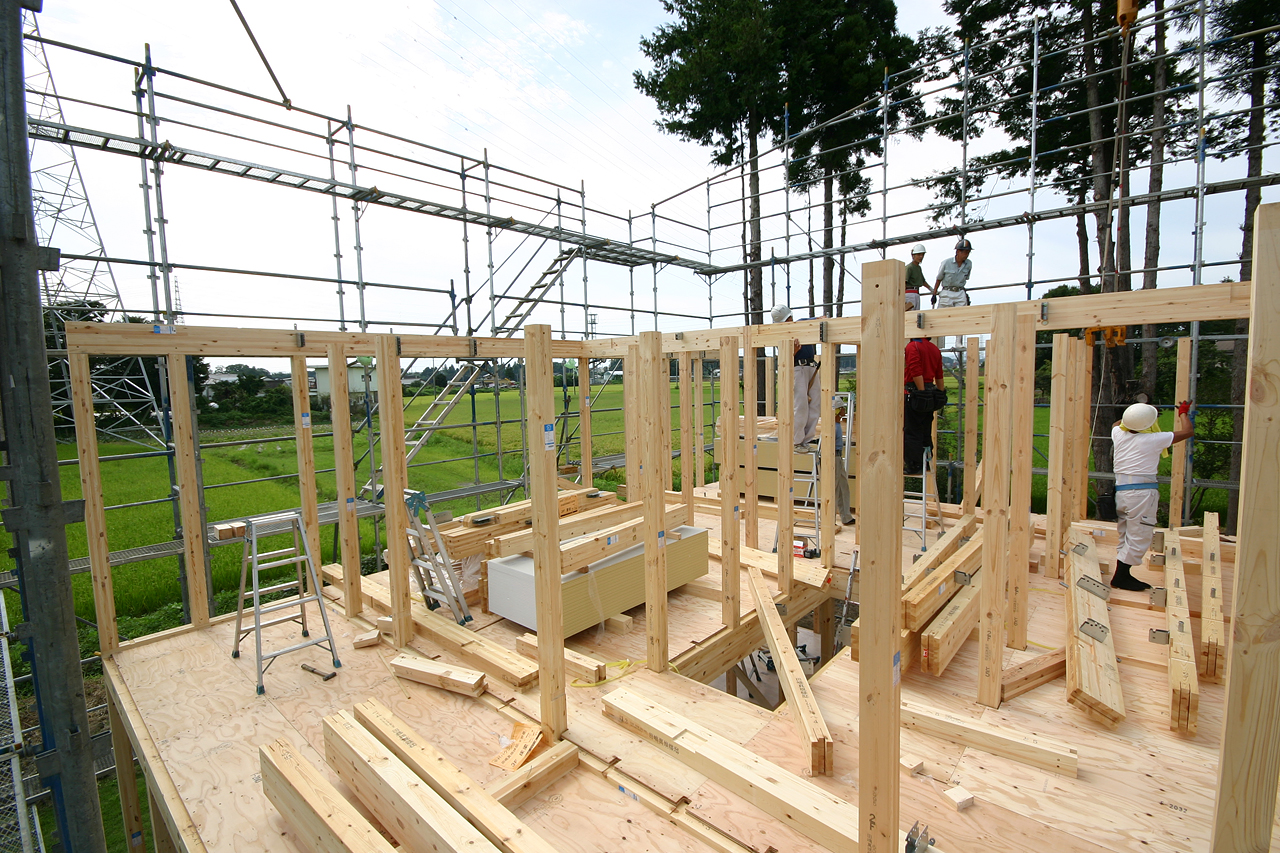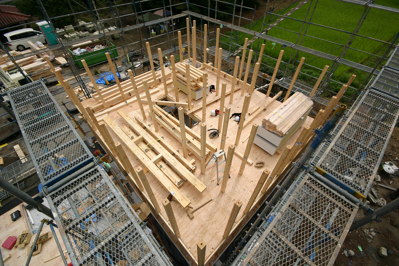建て方初日|緑の二世帯住宅|栃木県宇都宮市 マイク 8年前 宇都宮市東岡本町に建築中のT様邸の建て方が始まりました。 皆さんそう仰るんですけど、 基礎の状態で見るとちょっと狭く感じるけど、 こうして見ると広いですねぇ〜とは、お母さん談。 午前中で二階の柱まで進みました。 この南東の角度から写真撮るのが、一番いいカットになると妄想してます。 こちらはご両親の平屋部分。 そしてこちらは子世帯の二階部分。 この建て方の工程は、何度観ても楽しい時間です♪ それではまた明日のレポートをお楽しみに〜っ! お問合せはコチラのフォームからどうぞ♪ 名前(必須) メールアドレス(必須) ウェブサイト コメント(必須) メッセージの内容で宜しければ、送信前にこちらをチェック(必須) 送信 Δ{{#message}}{{{message}}}{{/message}}{{^message}}送信は失敗しました。 サーバーから「{{status_text}}」というレスポンスがありました(コード: {{status_code}})。 このフォーム処理機能の開発者に連絡して、このメッセージを改善してください。 さらに詳しく{{/message}}{{#message}}{{{message}}}{{/message}}{{^message}}送信は成功したようです。 サーバーのレスポンスが OK でも、送信が処理されていない場合があります。 このフォーム処理機能の開発者に連絡して、このメッセージを改善してください。 さらに詳しく{{/message}}送信しています… 記事が気に入ったらシェアしてね♪ 関連建て方完了|緑の二世帯住宅|栃木県宇都宮市2017年8月31日建築レポート造作工事|緑の二世帯住宅|栃木県宇都宮市2017年11月17日建築レポート建て方二日目|スキップフロアの家WAVE[ウェーブ]|栃木県宇都宮市2016年5月7日建築レポート