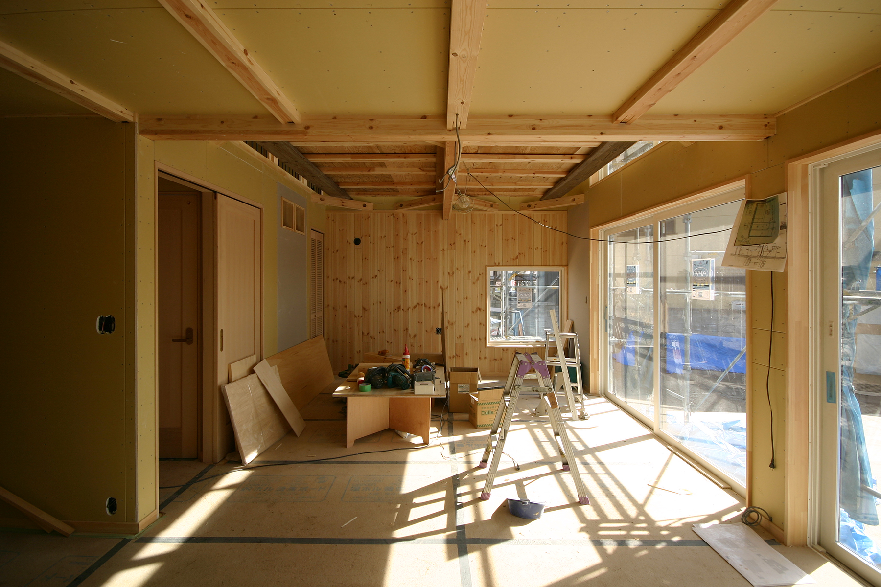 宇都宮市双葉に建築中のK様邸。大工工事もほぼ終わり、