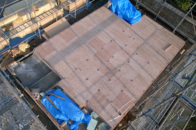 柱、梁の組み立てとなると、五~六人の大工さんがチームとなって