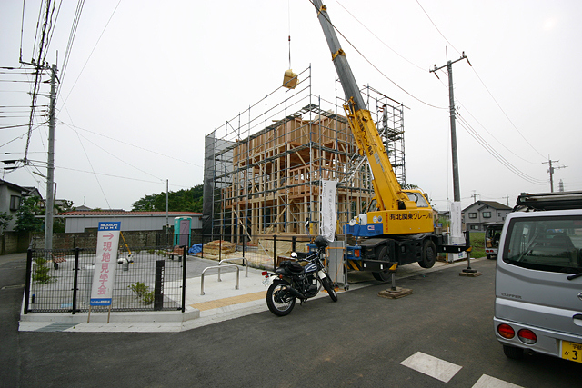 江曽島モデルハウス、建て方二日目の午後です。